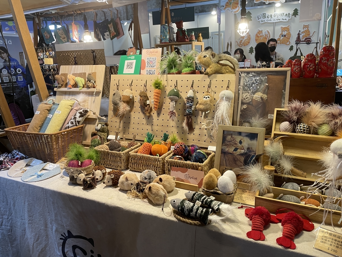 這個是之前逛市集的時候發現的手作品牌,我們家跳跳超級喜歡他們家的玩具還有逗貓棒,會玩到整個人飛起的那種喜歡。所以這次知道他們有擺國際手作節,就再來補貨響紙魚、響紙刺蝟跟一枝貓草蘿蔔。他們的毽子羽毛球也是毛不太會掉,在汪貓星球買的都被啃光了,但CityCat的還健在,他們有解釋他們是用什麼方式把羽毛綁著,但我有聽沒有懂,總之好像很厲害這樣。一樣可以在Instagram上面訂購。