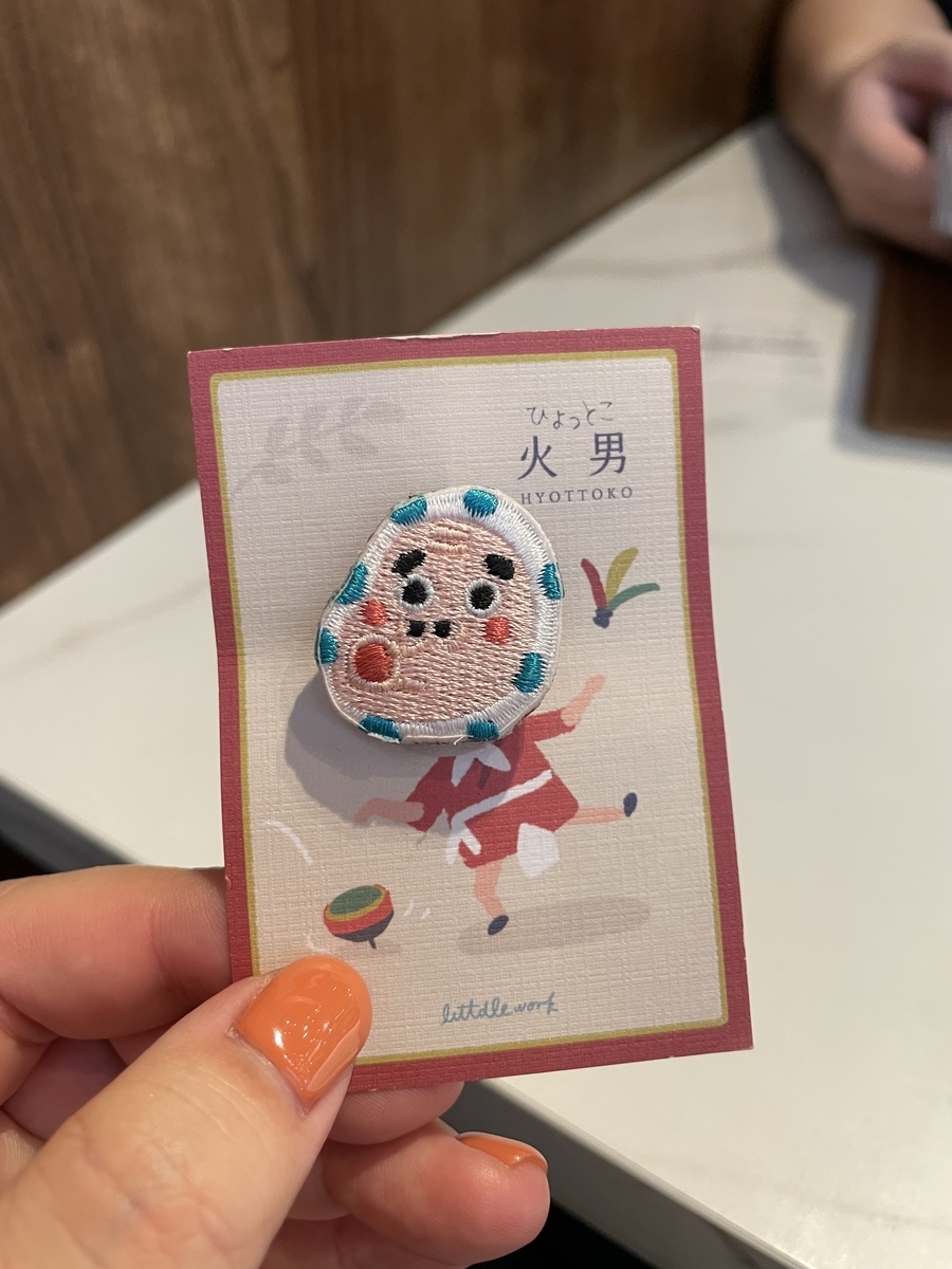 這個我不確定創作者是哪裡人,他的攤位上國旗是香港,但也有可能是我記錯了。我看上的是日本系列的刺繡別針,我在火男跟赤鬼之間猶豫不決,最後是買了火男回家,我把它別在我的直立筆袋上面,有夠可愛。他另外還有耳環、收納包等等其他商品~等再過一陣子可能會把赤鬼買回家吧XD