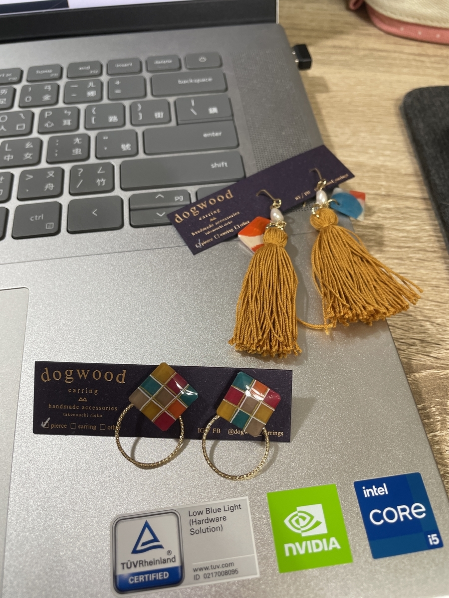 她是一個住在台灣高雄的日本京都人喔!我也是從早期逛市集的時候就知道她了,買了她的很多髮夾、髮圈,這次是為了去日本玩,買了兩副她的耳環新品。她的中文非常好,雖然有一咪咪的口音,但是完全不會聽不懂,溝通可以非常流暢~很推薦她做的飾品,跟市面上看到的很不一樣,花色也是基本上沒有看過,超喜歡 ❤