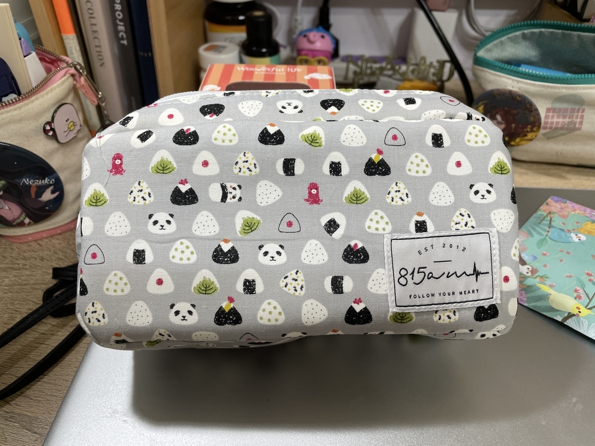 這位就真的是香港人了~經過的時候,我第一眼就被她的化妝包吸住目光,超級喜歡,但我沒有馬上就買下來,我決定整圈逛完如果沒有看到更喜歡的就再回來買。最後我還是回來了,買的是熊貓飯糰款的化妝包。他的容量非常非常大,我的粉底液、蜜粉餅、兩隻口紅、一個十色眼影盤、腮紅霜、底妝刷、兩隻眼影刷、口紅刷、眉筆、染眉膏,整套我的化妝用具都可以放進去,非常棒!這個我會帶去日本用~他另外還有Ipad收納包、筆電收納包、書衣。