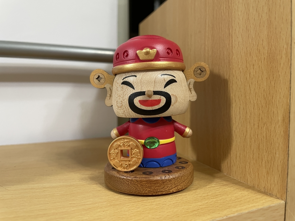 他是一位會搖頭晃腦的財神爺!有夠可愛!而且好~精緻。我一看到他我整個目光就無法移開,但他價錢有點高,他要550塊,本來想說如果250元我就秒買。都已經離開他了,但要離開那層樓的時候,我真的覺得我很想把他帶回家,所以我就還是走回去把它拿去結帳了XD 而且我朋友蛋蛋說:「抖抖抖,日進斗金啊!」是否說的太好?買吧?都買吧?他另外還有月老跟文昌帝君,提供朋朋們參考。